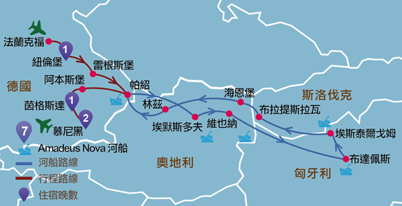 德國:法蘭克福、符茲堡、羅登堡、紐倫堡、雷根斯堡、帕紹、茵格斯達、慕尼黑