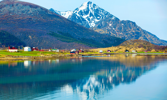峽灣沿線散布着許多古樸的村落,像珍珠一樣在美麗、原始的孫墨爾阿爾卑斯山 (Sunnmøre-alpane)下閃閃發光。陡峭的群山從峽灣拔地而起,海拔可高達 1700 米。峽灣將孫墨爾阿爾卑斯山一分為二,周圍散落着未受破壞的自然景觀和美麗的小村莊。