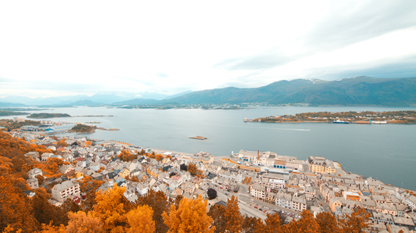 由三座島嶼組成,透過橋樑、隧道串串連,居民的房舍宛如與自然爭地一般,密集地建造在筆直的山崖之間,因此擁有特殊的城市景觀。1904年奧勒松遇到歷史性大火災,在城市重建工程時,當時建築師們採納了當石最流行的新藝術派建築風格,讓其尖頂、塔樓和裝飾性外牆與眾不同,被稱為是挪威最華麗的城市。