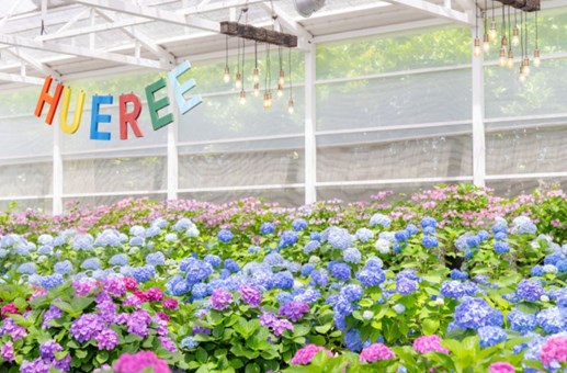 休愛里繡球花的獨特之處在於,繡球花顏色會隨著土壤的酸鹼度而變化,可以欣賞到不同顏色的花朵,從粉紅到藍色,每一種顏色都展現了自然的奇妙。