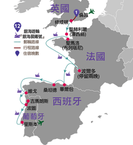 銀海晨㬢號遊輪將前往加利西亞自治區維戈,於郵輪上自由活動,享受銀海遊輪愜意活動及美食。
