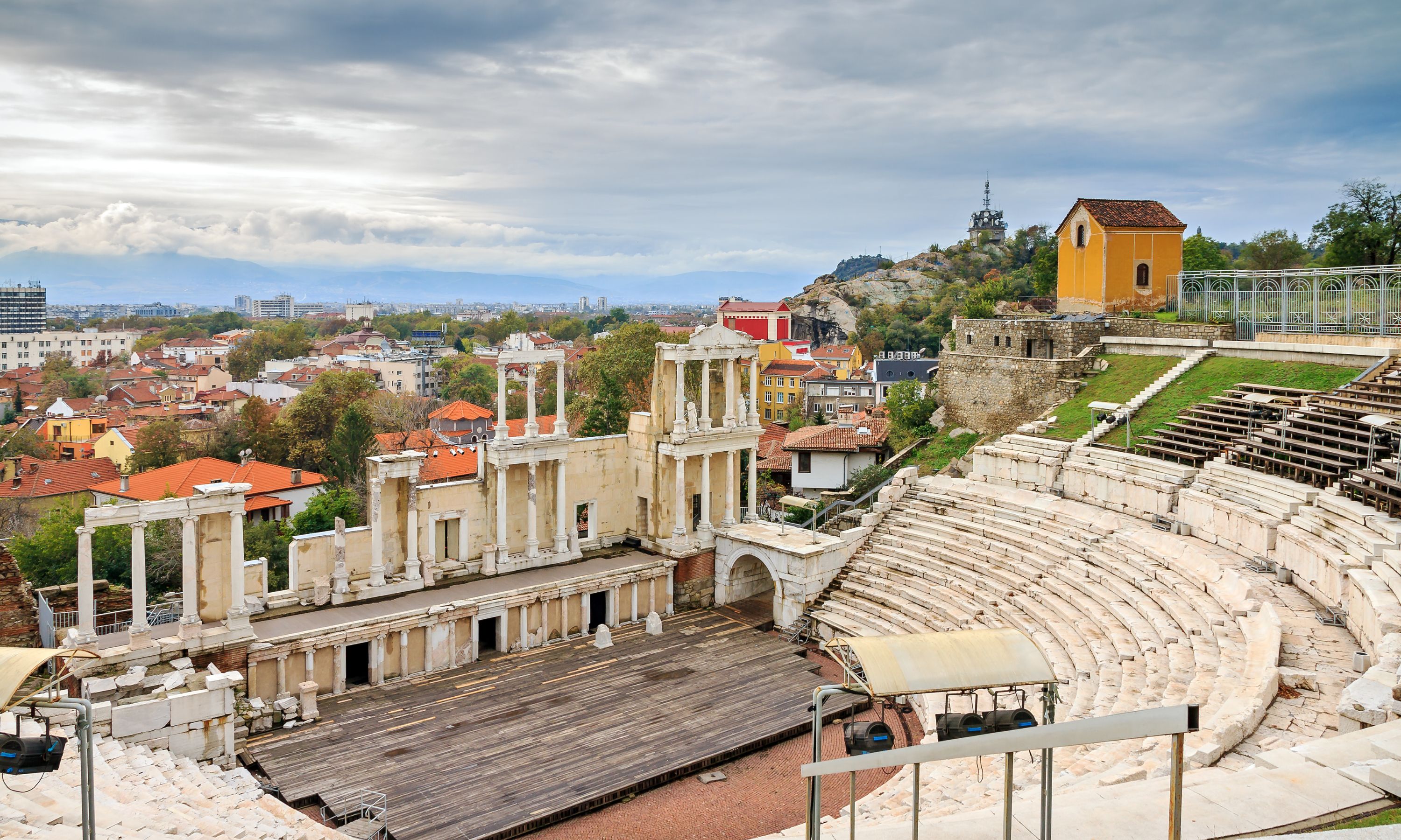 羅馬時期遺址,古羅馬人在普拉夫迪夫修建大量的公共建築、教堂和劇院等,4世紀末遭到天災和外族入侵而遭受破壞掩埋,直至 20 世紀中因山體滑動而被發現,透過挖掘及修復使這座劇場重見天日。