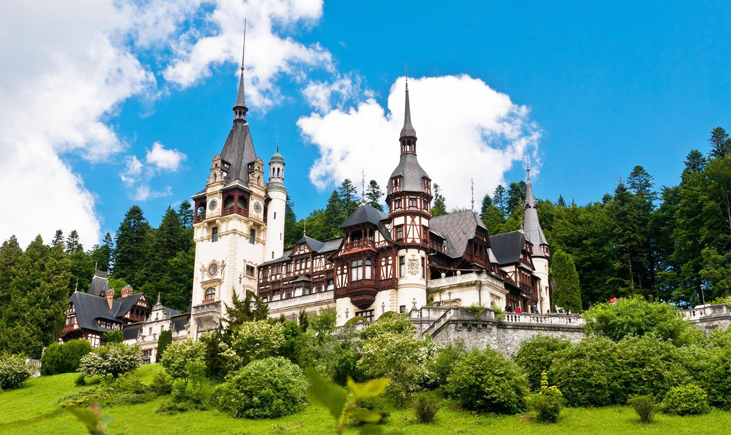 19世紀卡羅國王與其皇后的夏宮。白色的宮殿、高高的尖頂、巴洛克式雕塑,藏身於森林間,彷彿活脫脫從童話世界走出來。