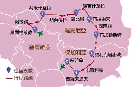 羅馬尼亞:蒂米什瓦拉 、胡內多拉、錫比烏、 鍚吉什瓦拉 、布拉索夫、西奈亞、布加勒斯特
