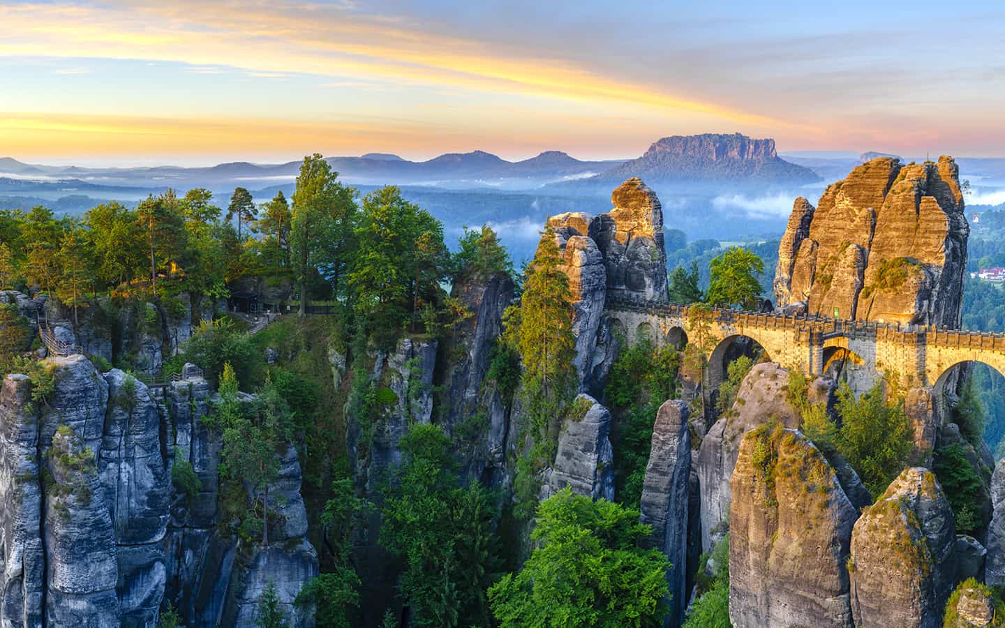 亦稱“小瑞士”,位於德國東部的德雷斯頓附近,以其壯麗的砂岩山峰和奇特的岩石地貌聞名。