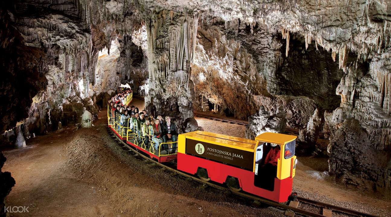 乘小火車進入,沿泛燈照明的小徑參觀,但見鐘乳石嶙峋處處,誠為一幕天然奇景。