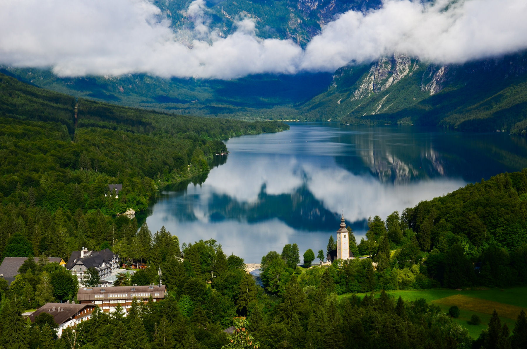 是斯洛文尼亞境內最大的自然永久湖,座落在唯一的特里格拉夫國家公園 (Triglav National Park)的河谷盆地中,周圍被阿爾卑斯山脈的群山環繞,早上湖面籠罩了陣陣水氣,宛若仙境。陽光出現霧氣漸漸散去,平靜無波的湖面倒映出寧靜蓊鬱的人世仙境。