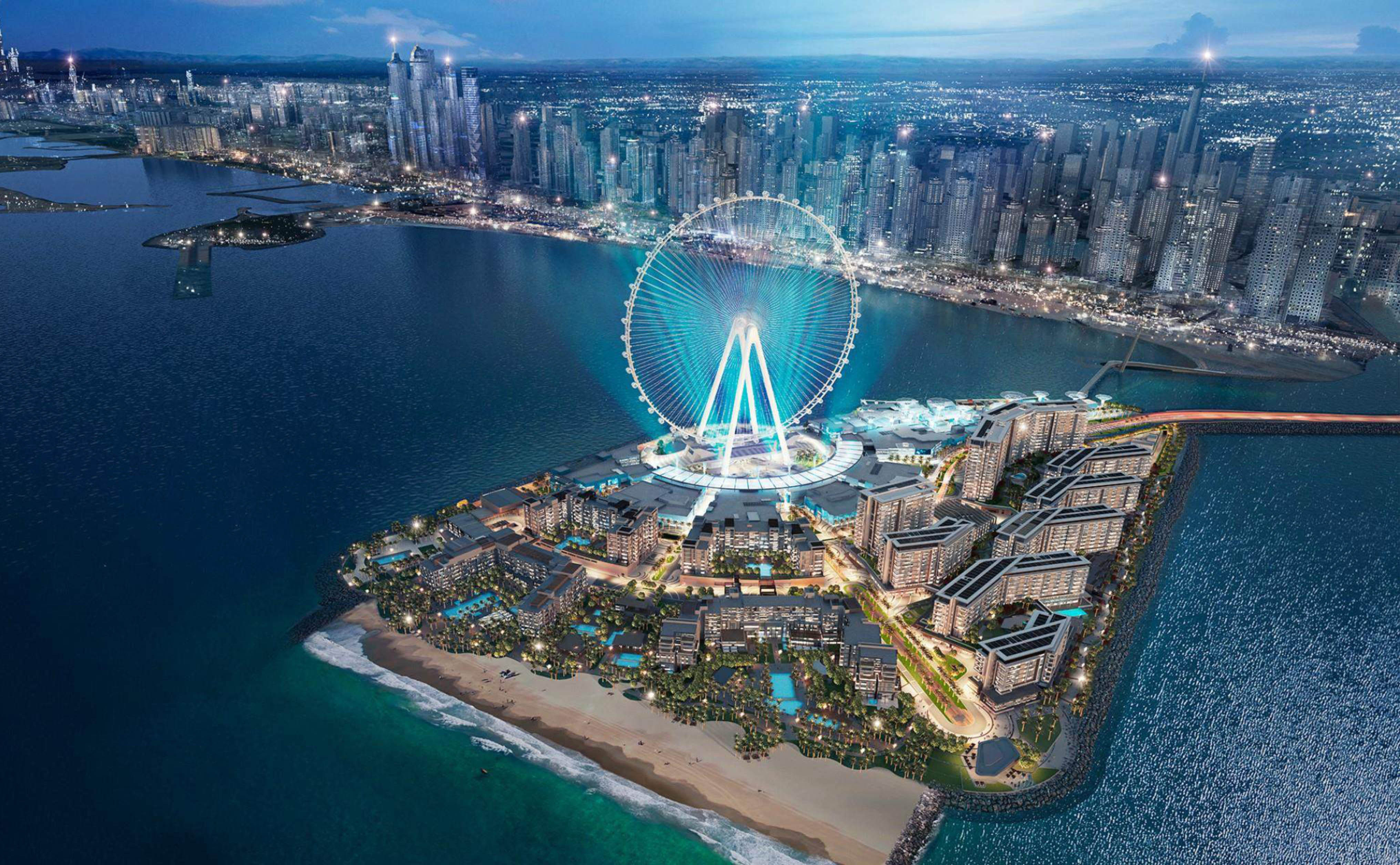杜拜之眼:位於城市藍水島(Bluewaters Island)的中心,是世界上最大和最高的觀景摩天輪。藍水島是位於杜拜碼頭的一座人工島,島上聚集了餐廳、市集、購物中心和住宅區,簡直是購物天堂,相當繁華熱鬧。