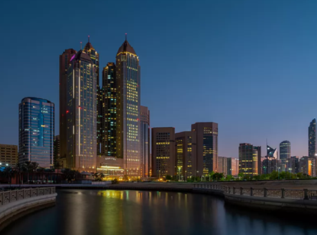阿拉伯聯合酋長國首都。自1958年發現第一口油井後,便為這地區帶來源源不絕的收入。