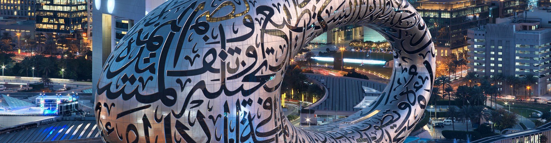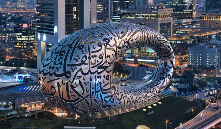 被《國家地理雜誌》評為地球上14個最美博 物館之一,耗資逾1億美元打造的建築,以獨特的環形設計和阿拉伯詩文裝飾,象徵人類對未來的無限想像與創新精神。