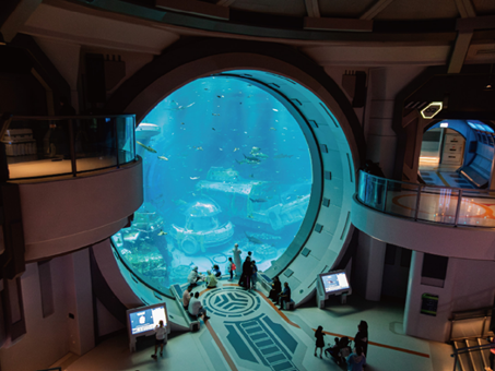 透過海底玻璃通道可近距離觀賞超過65,000隻海洋生物在古老遺跡間自由穿梭,包括鯊魚、魔鬼魚、水母及各式色彩斑斕的魚類。
