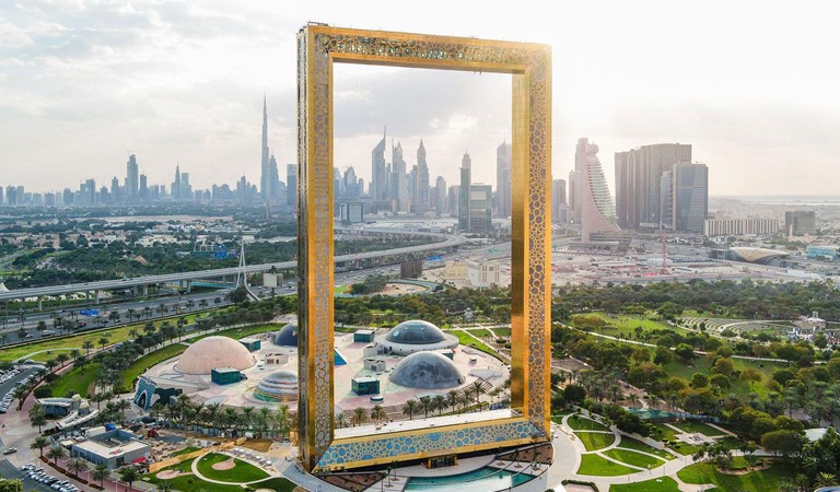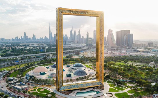世上最大的相框造型建築,50層樓高,四面邊框鍍金並飾有華麗花紋,遠遠望去閃耀奪目。