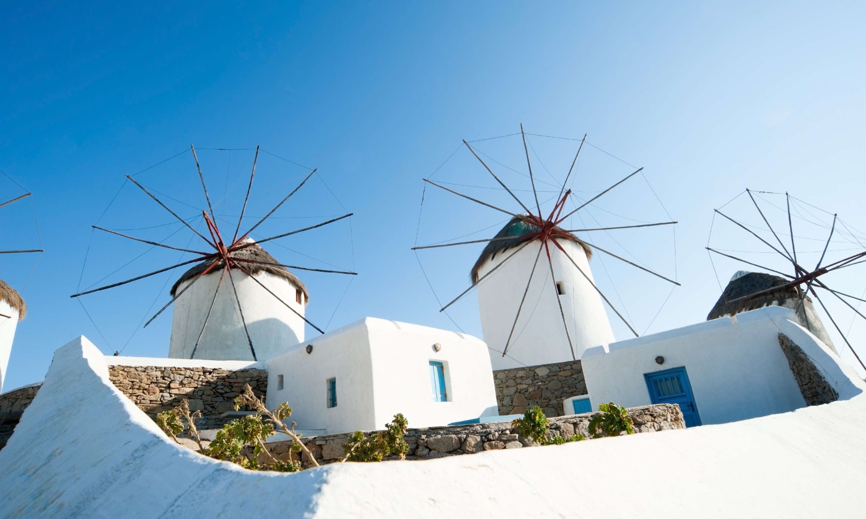 建於16世紀,最初是為了磨麥子。現五座巨型基克拉澤式風車,昂首迎風,彷彿巨人般守護這片土地。