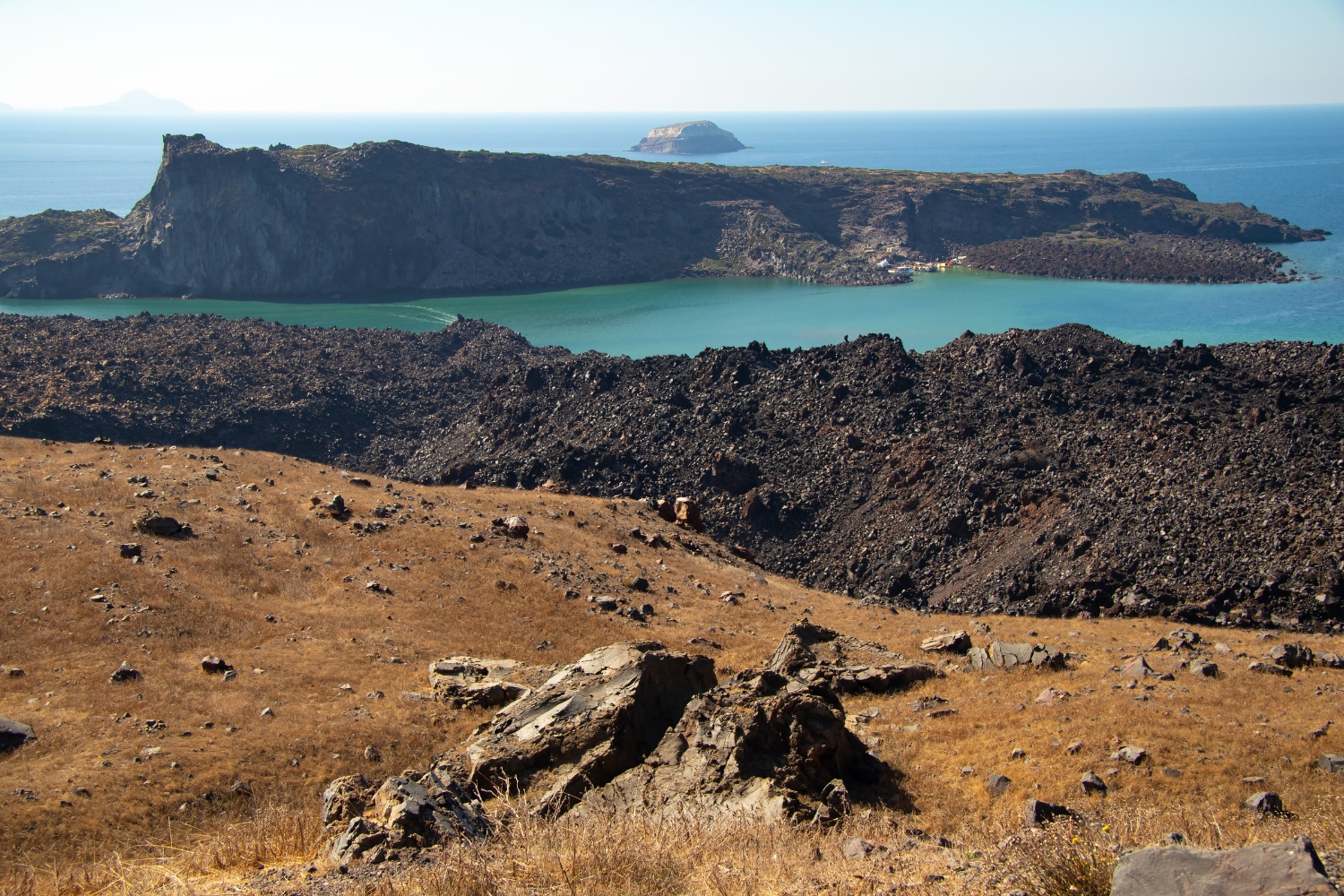 以獨特的火山地質景觀而聞名。海灘上鋪陳著黑色鵝卵石與墨色沙礫,是遠古火山噴發後熔岩冷卻所造就的奇景,在陽光照耀下,與蔚藍海水形成強烈對比。
