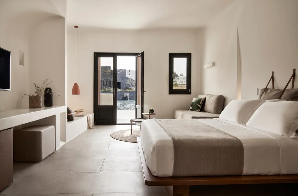 酒店坐落在懸崖之巔,當夕陽將海面染成金黃,你將在這裡見證一生難忘的浪漫景致。這裡的每間客房約23平方米,均為你打造了希臘式風格套房,充滿悠閒度假感的迷人氛圍,在愛琴海的微風中盡情放鬆。只需步行9分鐘便可前往聖淘維尼島的中心—費拉(Fira),能遠離喧囂,輕鬆前往小鎮探索!