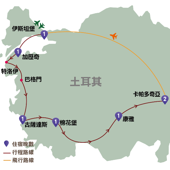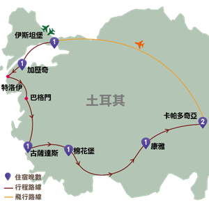 伊斯坦堡、加歷奇、古薩達斯、棉花堡、康雅、卡帕多奇亞(奇石林)