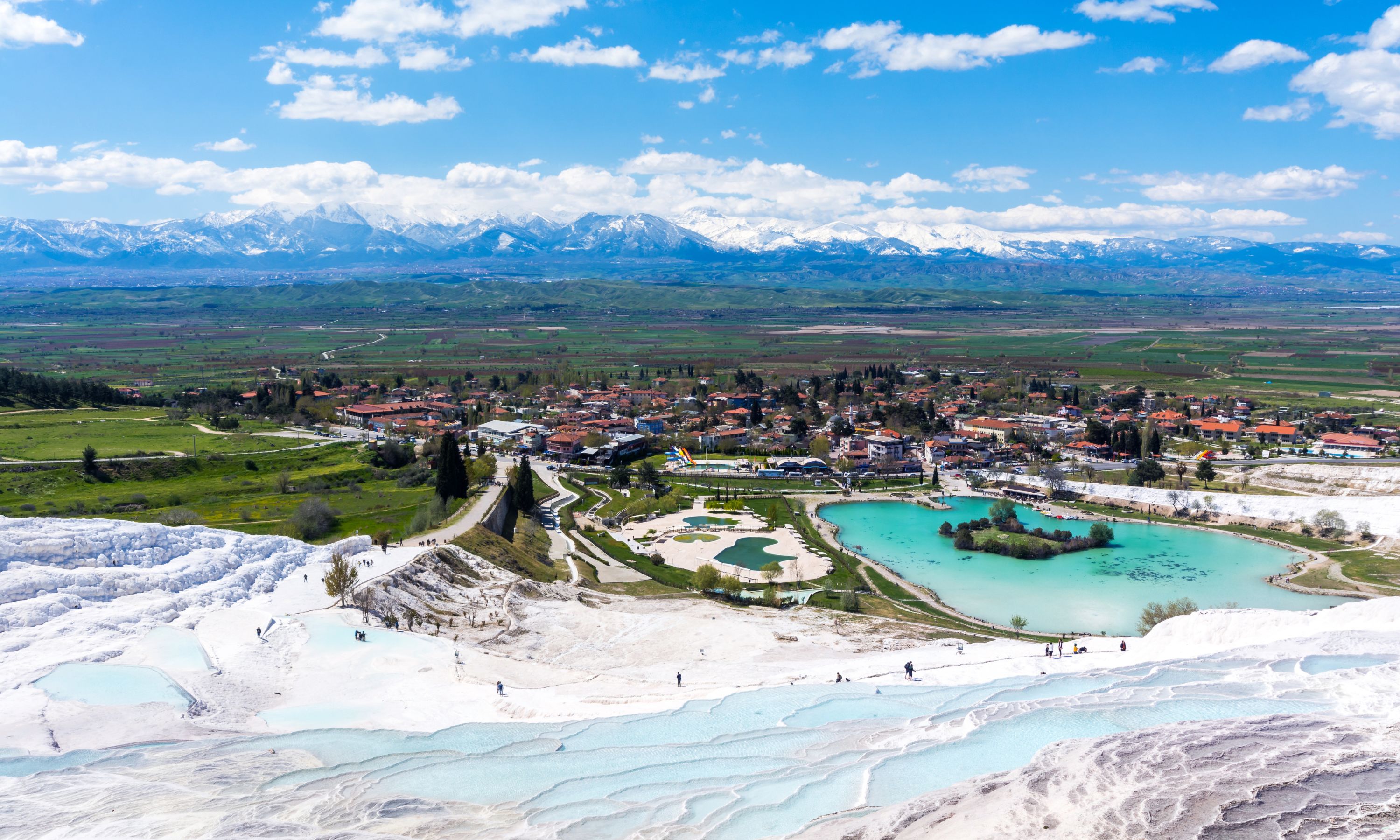 棉花堡:1988年被列為世界文化遺產。泉水中含有豐富鈣質,由地底湧出的泉水冷卻並沉積下來的石灰質經過長年累月變成棉花狀的石灰岩層,最後形成宏偉的棉花堡。