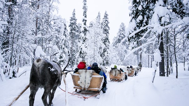 了解拉普蘭人的生活方式及探訪北極圈馴鹿,安排乘坐馴鹿拉撬,享受雪上馳走的快感。
