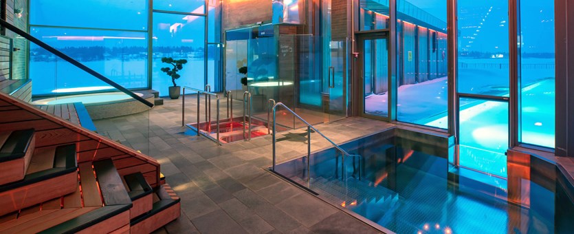 Cape East度假村於哈帕蘭達(瑞典)。 冬天整個景色被白雪所包圍,晚上可以看到迷人的北極光。水療中心是Cape East的核心,屢獲殊榮,體驗到以現代形式呈現的古老傳統。這座桑拿浴室的設計類似於瑪雅人的寺廟,共有十個不同高度的長凳擺放區,可容納多達150人。在最底層,提供冰浴、熱水池和冷水瀑布淋浴多種體驗。在室外還有冷水室外游泳池。高層可俯瞰芬蘭的邊界。