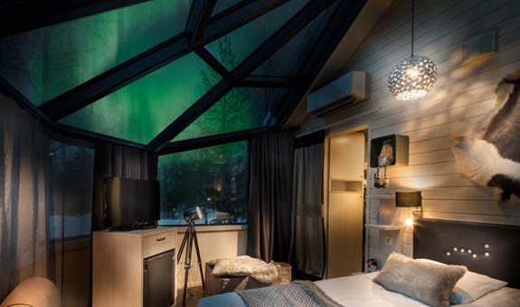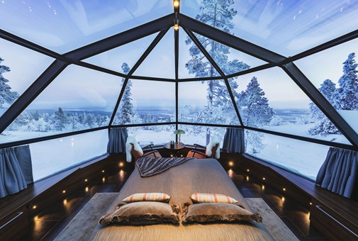 玻璃屋酒店是為了觀賞極光而設計的靈感來自傳統的拉普蘭小屋。屋頂呈全透明玻璃,而且類型繁多。玻璃都是保溫玻璃,可保持屋內溫暖,也防可防止屋頂積雪情況出現。即便在極寒天氣下,屋內都是暖暖的,提供一個舒適的環境觀賞極光,是畢生難得的體驗。(玻璃屋類型繁多,圖片只供參考)