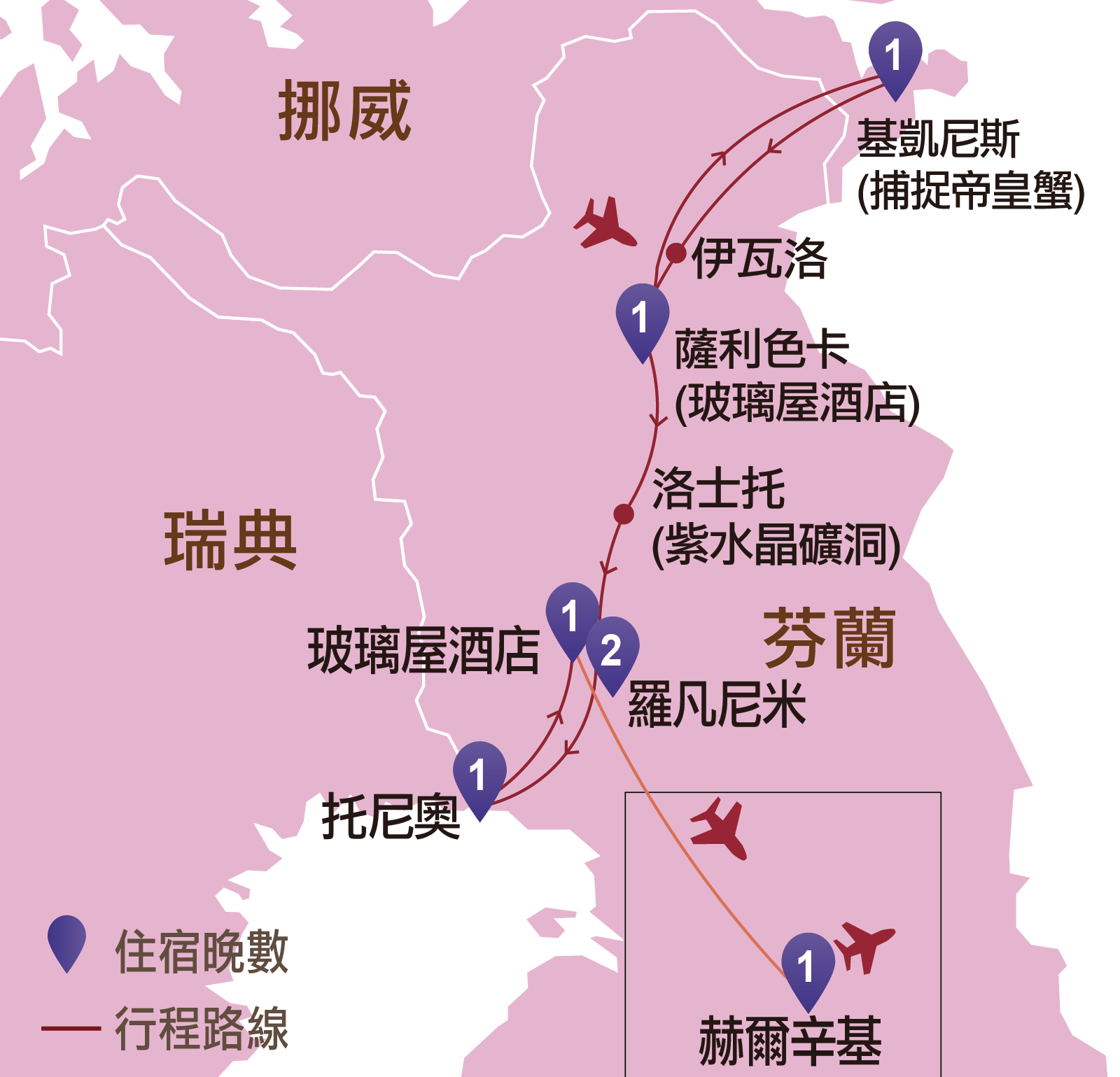 芬蘭:依瓦洛、薩利色卡、洛士托、羅凡尼米、赫爾辛基、托尼奥