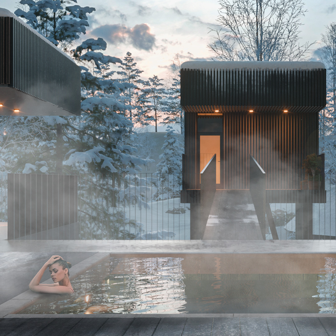 提供柔和煙熏löyly (潑水於熱石產生的蒸汽與溫暖),每天僅加熱一次,氛圍隨日節奏變化,營造動態而舒緩的體驗。