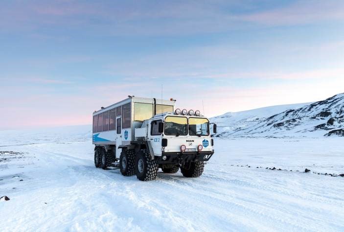 朗格冰原為冰島第二大冰川,僅次於瓦特納冰原。這裡獨特的“熔岩瀑布”冰川絕無僅有,據說是從熔岩中噴湧而出的瀑布形成的冰川,無比浩瀚壯觀。安排乘坐8 x 8大型冰川雪車,專業嚮導的帶領下,馳騁於一望無際的冰川地帶,在冰川和冰原的包圍中破冰前行,接著進入冰川的內部一探究竟,遊覽雄偉壯觀的冰川景致。