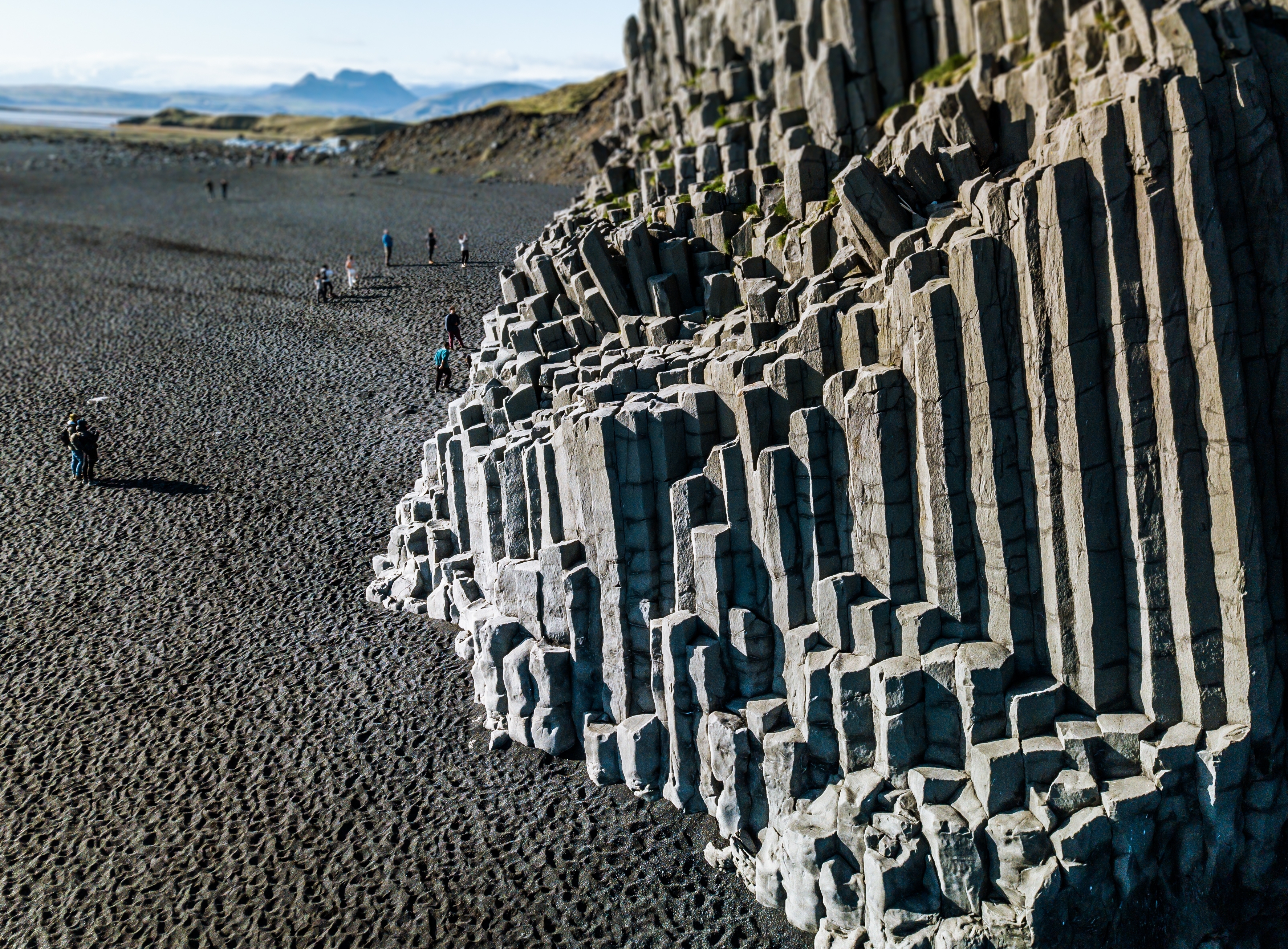 黑沙灘:黑色沙子由火山爆發的熔岩,經風和海浪侵蝕而成的玄武岩顆粒,奇形怪狀的玄武岩海蝕柱,巧奪天工。