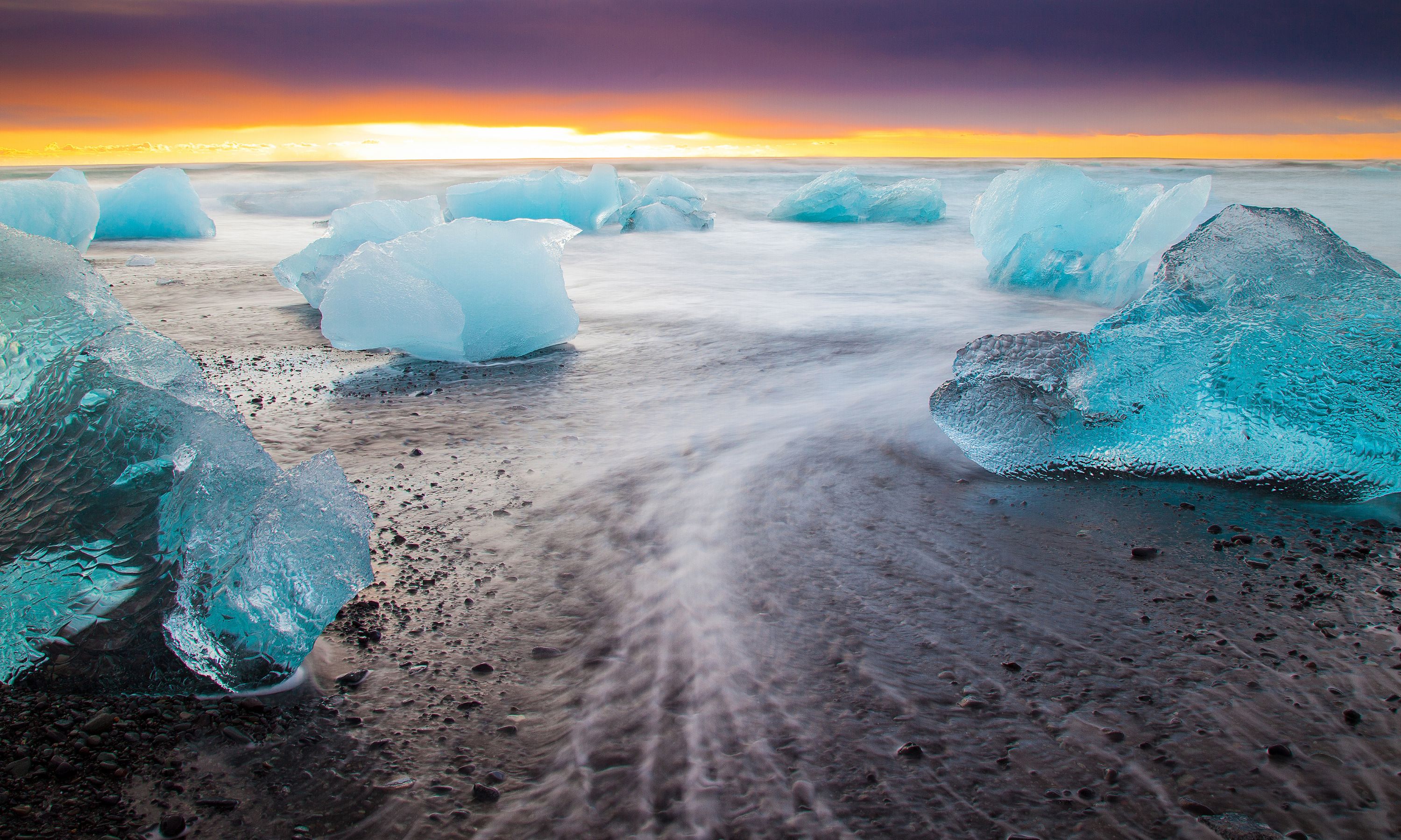 位冰河湖位於冰島最大的瓦特納冰川國家公園內是天然形成的冰瀉湖。在冰河湖內的浮冰顏色主要是雪白色,也有部分保留了冰藍色,也有被火山灰沾染到的部分則會呈現黑灰色。隨著全球暖化,冰原也日漸融化,前端部分形成了冰河湖。雪白山峰和岸邊黑色的沙岩形成強烈對比;湖中漂浮的冰雪在日光折射下,散發出冰藍的光芒。
