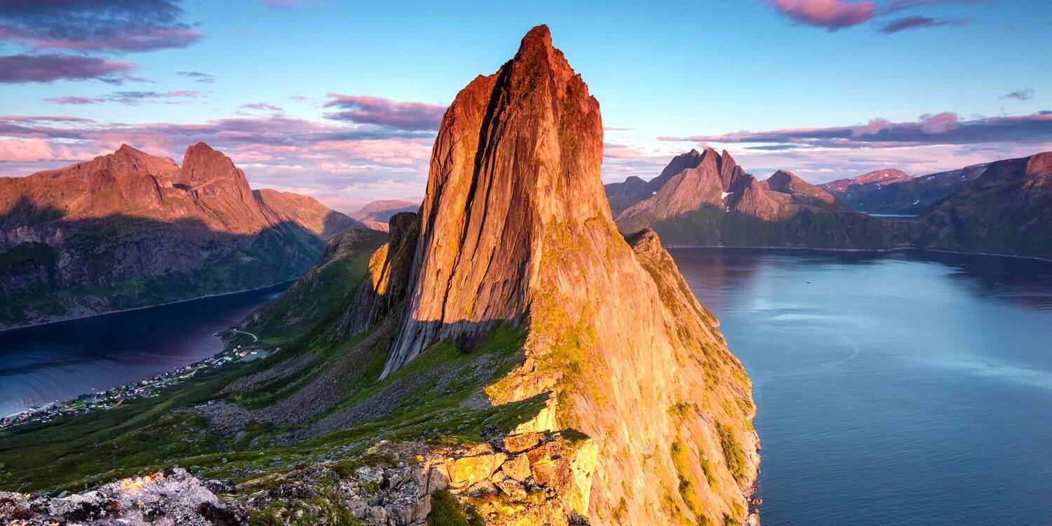 是挪威第二大島嶼,擁有令人驚嘆的自然景觀和豐富的文化歷史。這裡的國家級風景路線蜿蜒穿過壯麗的山脈和清澈的海灣,特別是著名的“魔鬼之牙”(Okshornan)山脈,在每一個轉角都能欣賞到獨特的美景,吸引無數攝影愛好者和登山者,能夠在一個地方體驗到挪威的精華。而且,這裡以豐富的魚類資源而聞名,吸引了來自世界各地的釣魚愛好者,特別是鱈魚、比目魚和三文魚等。