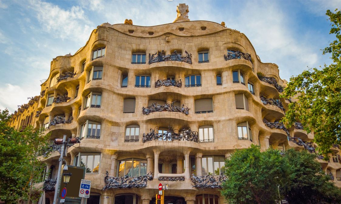 高迪設計的私人豪宅,外形以波浪紋為主,不規則牆面和平臺戴頭盔的士兵造型煙窗是它著名的標誌。