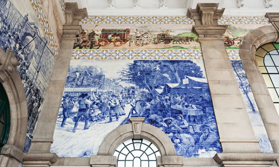 聖本篤車站:於19世紀由失修已久的修道院重建而成,目前還是一個交通繁忙的車站。車站內二萬片的藍色彩磚就如一本教科書,訴說著波圖的歷史。