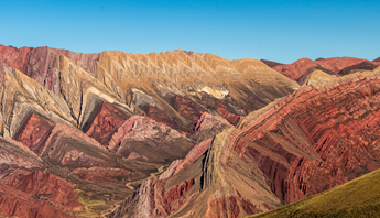 彩虹山(Montaña des 7 colores)原本一直被積雪覆蓋,直到2017年全球暖化加劇,被一隊熱愛行山的人士偶然發現,使其聞名於世界。丹霞地貌造就的彩虹奇景就像是上帝打翻了顏料盤,五彩斑斕美不勝收;由於彩虹山坐落在海拔5000米的安第斯山中,想一賭彩虹山的風采,必須培養好體能,也需衡量自身身體狀況。