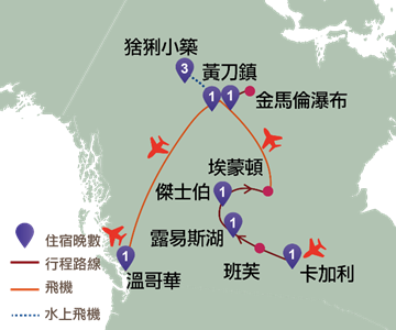 卡加利、班芙、硫磺山、露易斯湖、傑士伯、埃蒙頓、黃刀鎮、猞猁小築、溫哥華