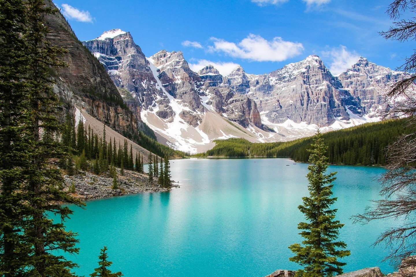 座落於班芙國家公園之中,四周被大大小小十數座山峰所包圍。夢蓮湖最特別的地方在於當湖水被陽光照射時,會呈現出一種神秘又夢幻的鮮藍色,能在平靜的湖面上看到絕美景色的倒影。夢蓮湖更曾經是加幣二十元鈔票上圖案的地方,可見夢蓮湖代表性十足。