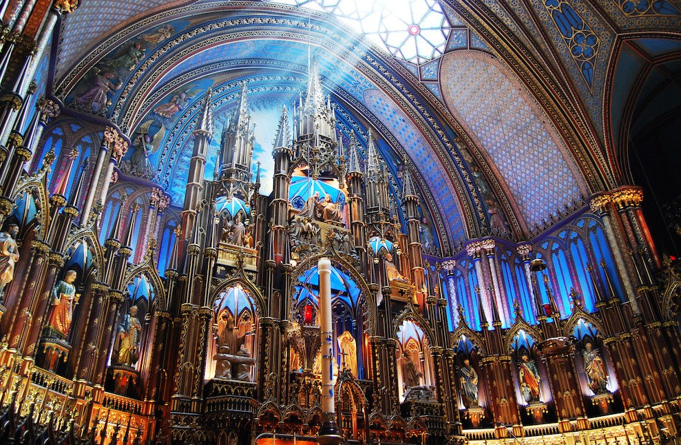 北美最大的教堂之一,建於1829年。內部繽紛的彩繪玻璃和星光璀璨的天花板雕琢吸引了無數遊客。這裡曾是加拿大天后歌手席琳狄翁的豪華世紀婚禮場地,展現出獨特的魅力和浪漫氣息。