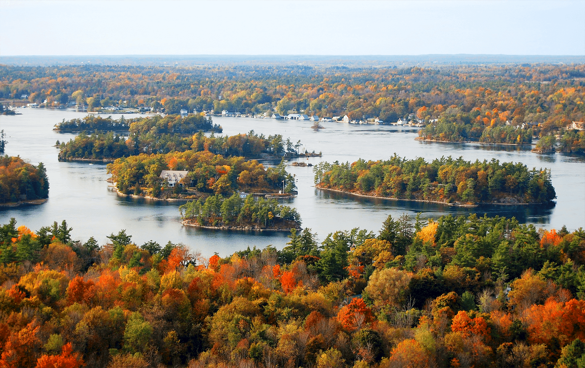 從魁北克省南延至美加邊境的尼亞加拉大瀑布,全長約800公里。秋日造訪時,楓葉的絢麗色彩更是美不勝收,呈現出一幅如畫的秋色風景。
