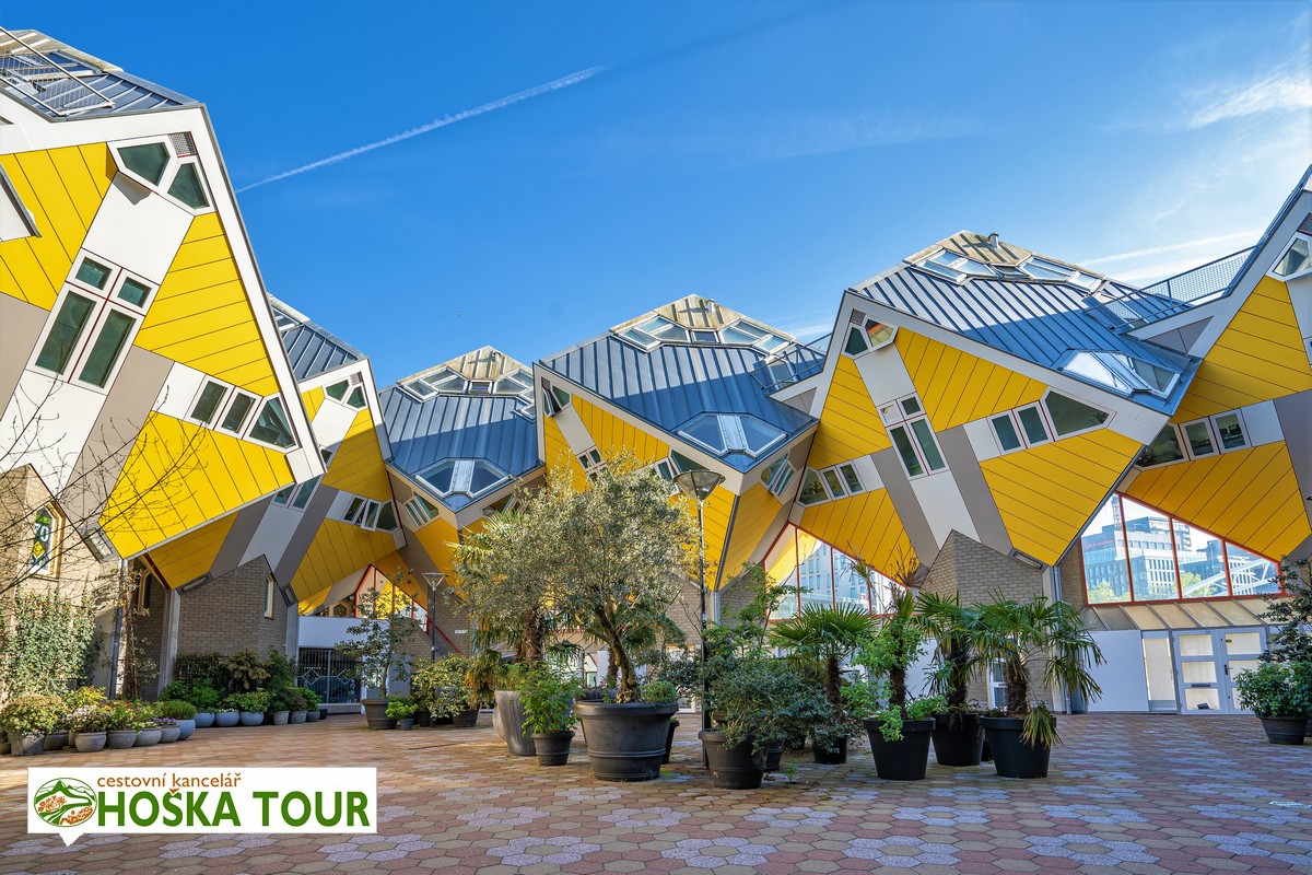 像一個巨大的魔方,獨特的外形使它成為鹿特丹的經典地標建築。整個建築由40幢方塊房子傾斜45°連接而成,是荷蘭最早的立方體形房子。