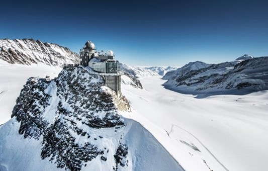 乘搭艾格快線及登山火車,穿過岩洞隧道,前往少女峰車站,登上海拔3,454米的觀景台,冰河奇景一覽無遺,更可欣賞萬年冰洞內的各式冰像奇景。2019年韓劇"愛的迫降"的加持下,少女峰又再一次從眾多瑞士高山中,抓住大家的目光。