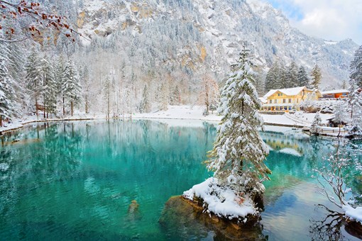 「瑞士九寨溝」美名的藍湖。藍綠色的湖水迷人且清澈,湖中的木頭與鱒魚也能輕易可見。傳說中,湖邊住著一位藍眼的少女,她與牧羊人相戀,兩人時常一同划船。有一天,牧羊人墜下懸崖身亡,少女陷入無盡的思念,每夜獨自一人划船,哀悼內心的痛苦。一個早上,少女的父母發現翻覆的小船及墜入湖中的少女,自那天起,湖水神奇地變成湛藍色,彷如少女深邃的藍眼睛與眼淚。