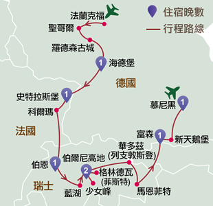德國:法蘭克福、聖哥爾、羅德森古城、海德堡、富森/肯普田、慕尼黑