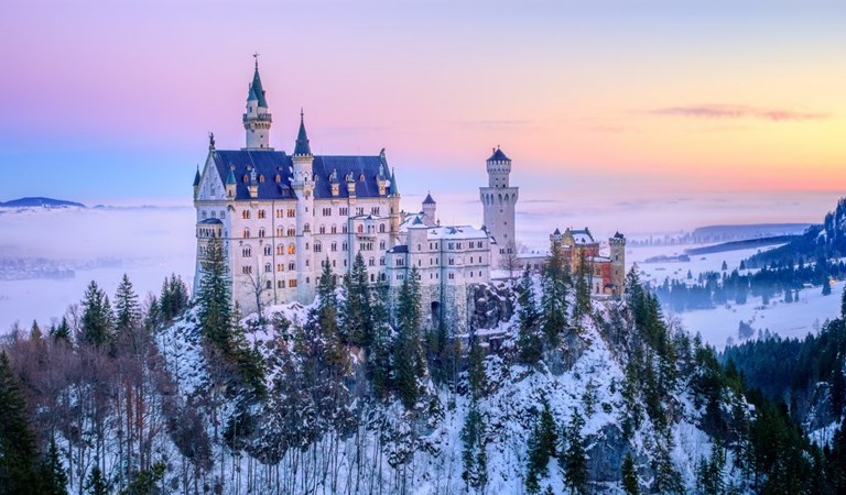 建於 1869 年,仿中世紀騎士城堡,融合巴洛克、哥德、文藝復興等各種建築風格,堡內不乏以天鵝為主題的裝飾,壁畫到浴盆都可以看到天鵝美麗的身影。前往新天鵝堡,可選擇以步行慢慢登山,約 30-40分鐘可達,亦可乘穿梭接駁車前往瑪麗安橋附近下車。