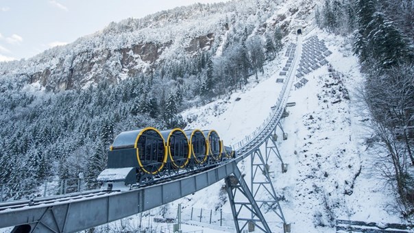 耗資 16 億於 2 017 年建成,是世界上最陡的纜車鐵路,其坡度更達到 47.7 。獨特的車箱由四節滾筒組成,在纜車於陡坡爬升時仍能保持水平,乘客可以最佳角度欣賞沿途風景。
