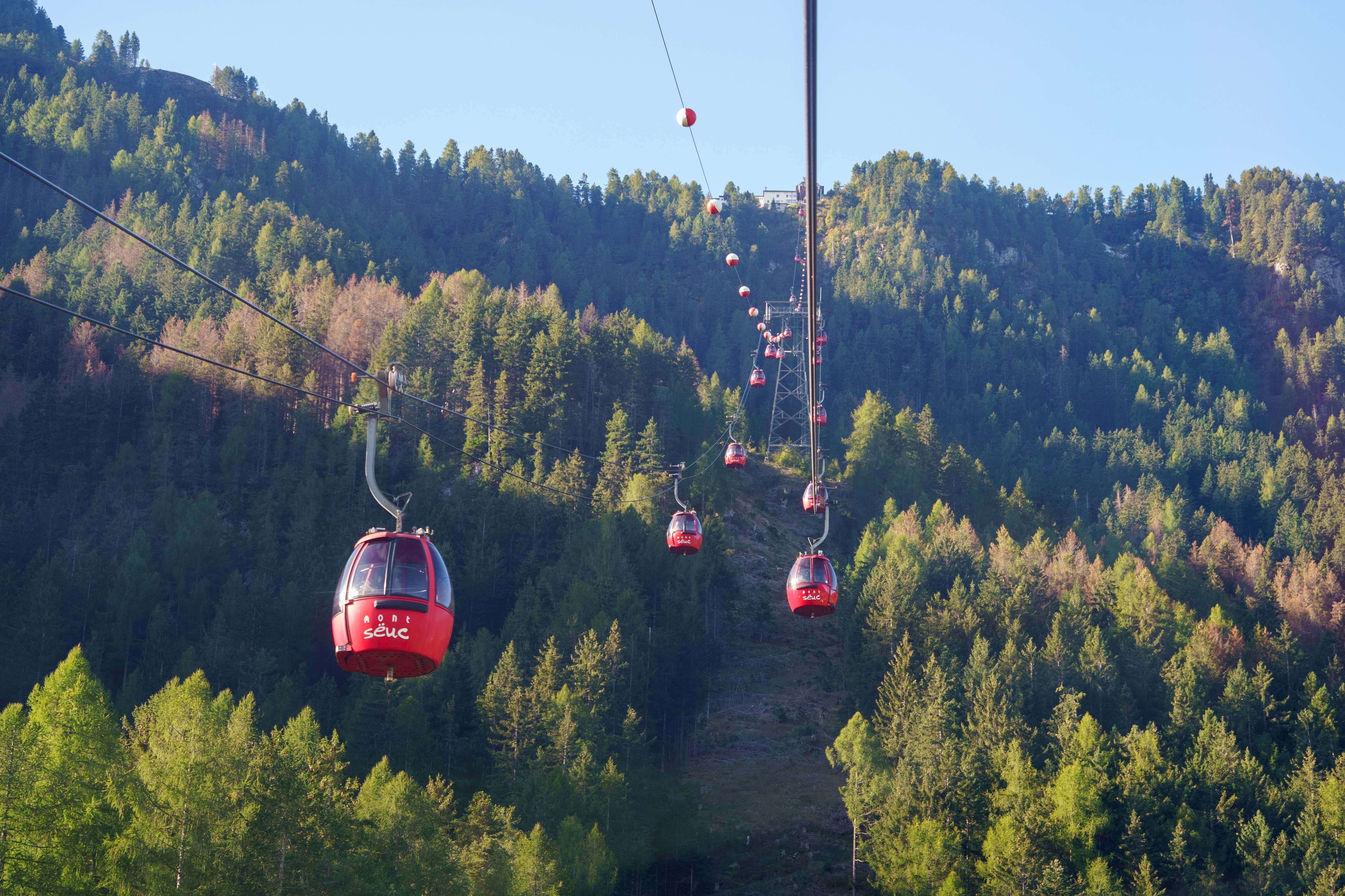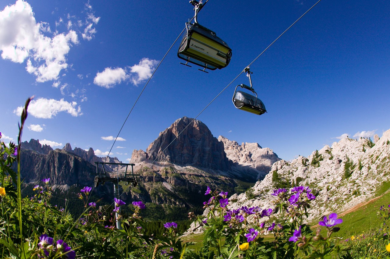 在多洛米蒂,搭乘纜車本身就是享受:寬敞的車廂、視野極佳的透明大窗、全景視野,讓沿途山谷、林海、溪流、村落盡收眼底。