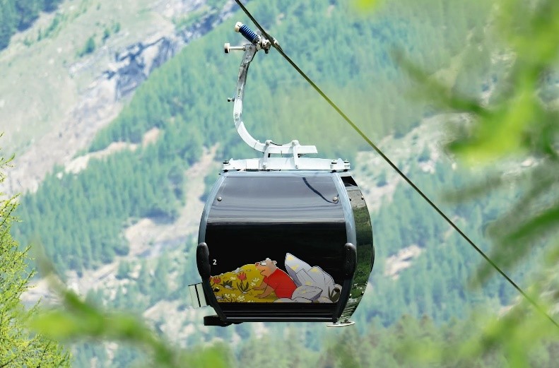 Piz Seteur纜車︰10人座車廂纜車沿途對望等腰梯形雄壯大山。