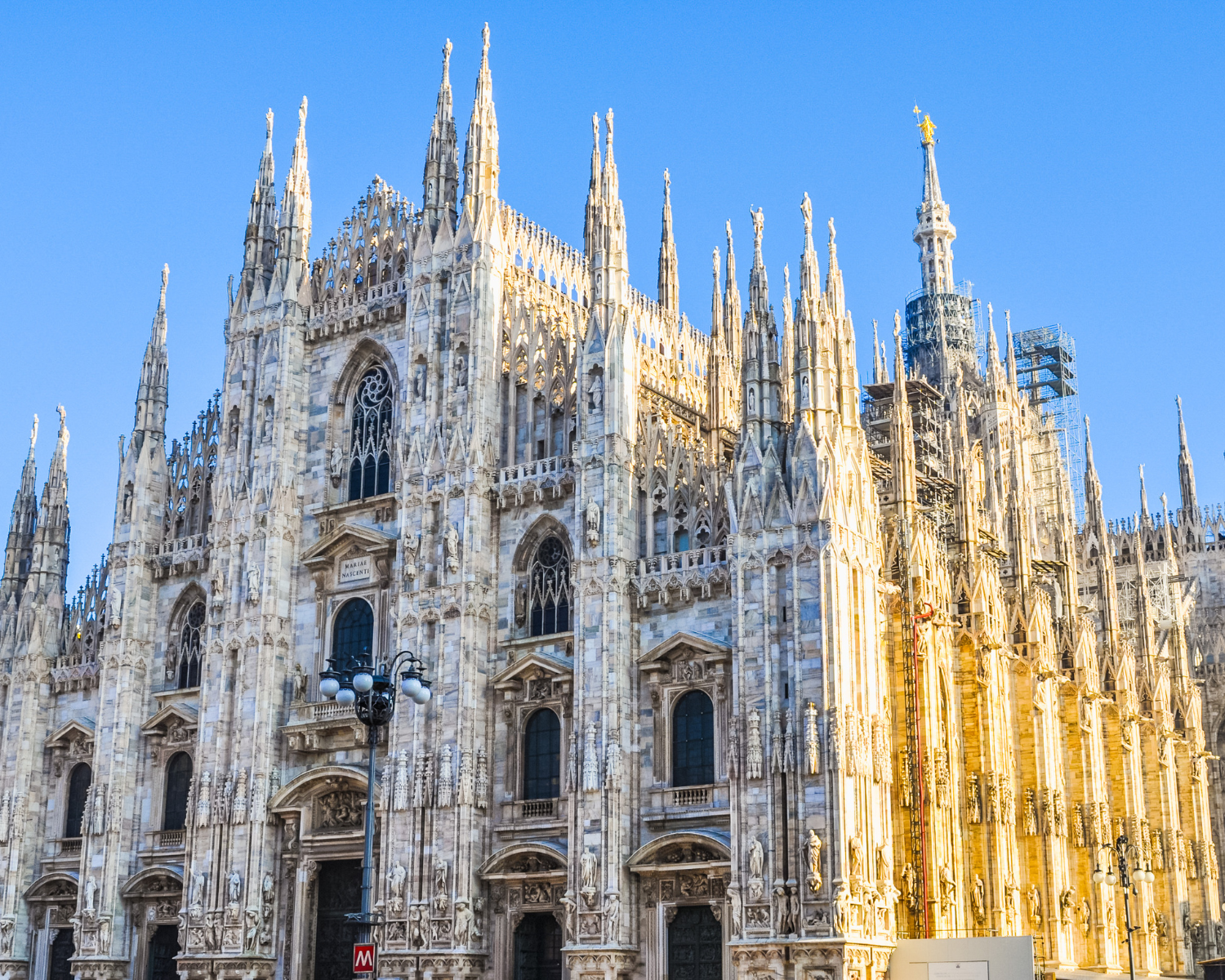 米蘭大教堂(參觀大教堂內部+電梯登頂+大教堂博物館):米蘭市的地標,名列世界五大教堂之一。拿破崙1805年攻打意大利後於教堂舉行加冕儀式。歷經六個世紀才建成,達文西為這座建築發明了電梯,極盡繁複精美。