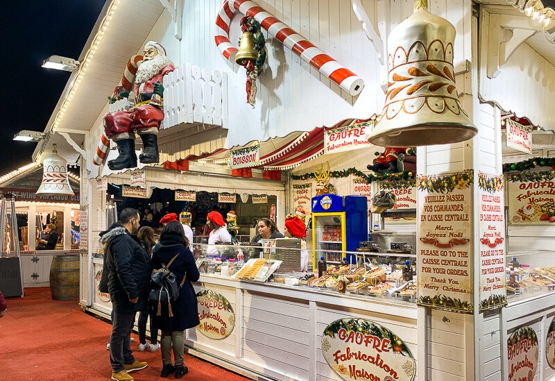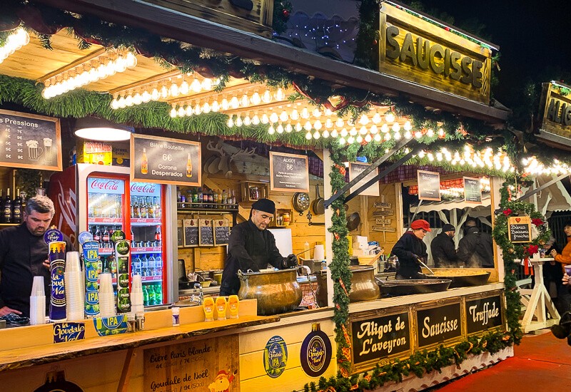 聖誕市集有很多地道小吃攤位,波爾多的代表甜點是可麗餅(Canelé)、烤栗子等,或是法國各地經典冬季美食,如Bretzil、酸菜、馬卡龍及烤香腸等。不過最受歡迎的還是Vin chaud (熱紅酒),以當地紅酒為基底,加入肉桂、丁香和橙皮熬煮,成為聖誕市集不可或缺的靈魂。