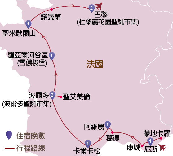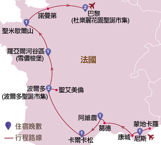 法國:尼斯、康城、葛德、阿維農、卡爾卡松、波爾多、聖艾美倫、羅亞爾河谷區、聖米歇爾山、諾曼第、巴黎