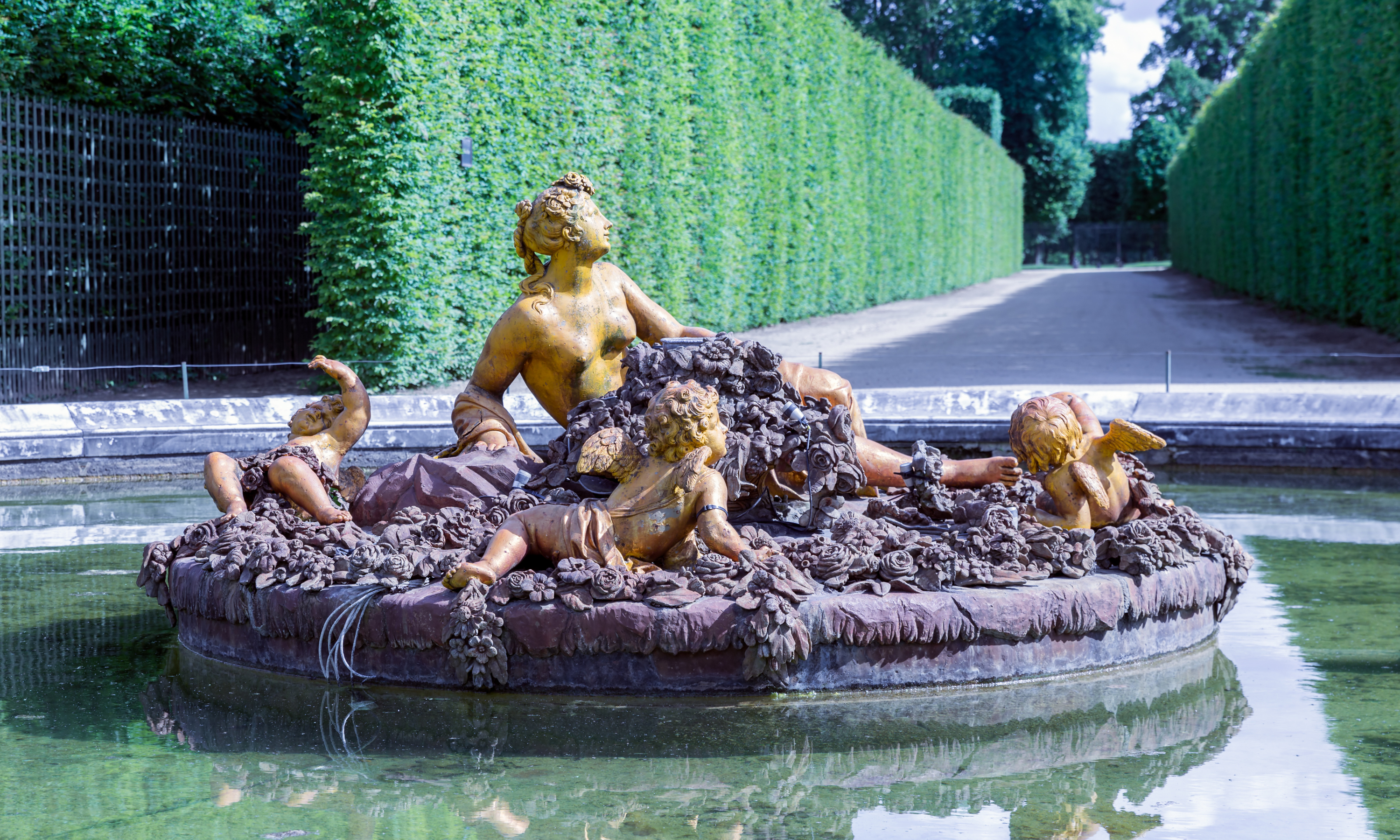 建於路易十四時期,舉世聞名之御花園,佔地100多公頃,設計精妙的花叢及傳神的雕塑;園內的太陽神噴泉展現出獨特的神話故事色彩。
