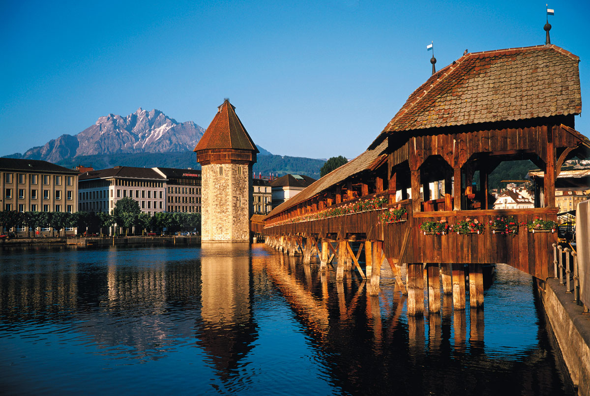 又名教堂橋,是琉森的著名地標,長204米的木結構廊橋跨越羅伊斯河。於1993年因撞船意外而被火災所燒毀,事後很快被重建並回復原貌。